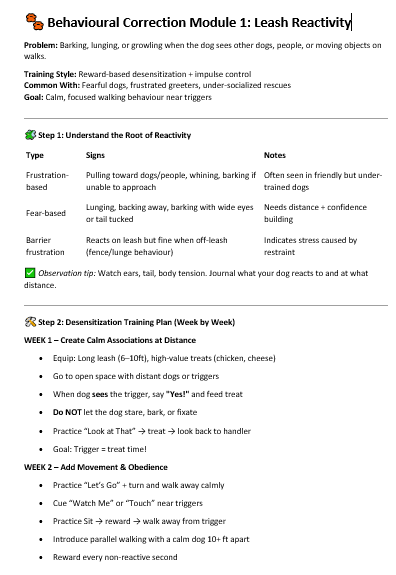 Full Dog Behaviour Correction Guide, 8 Modules, Correct Bad Behaviour in Days, 23 Page Guide